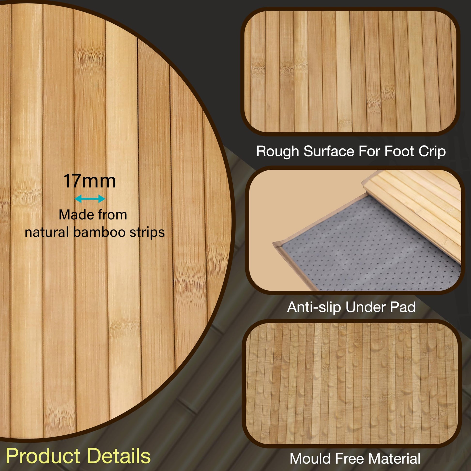 - Sustainability & Durability: Made with sustainability in mind, the bamboo material ensures the mat is highly durable and Resistant to moisture and mildew, it's built to last in damp bathroom environment.