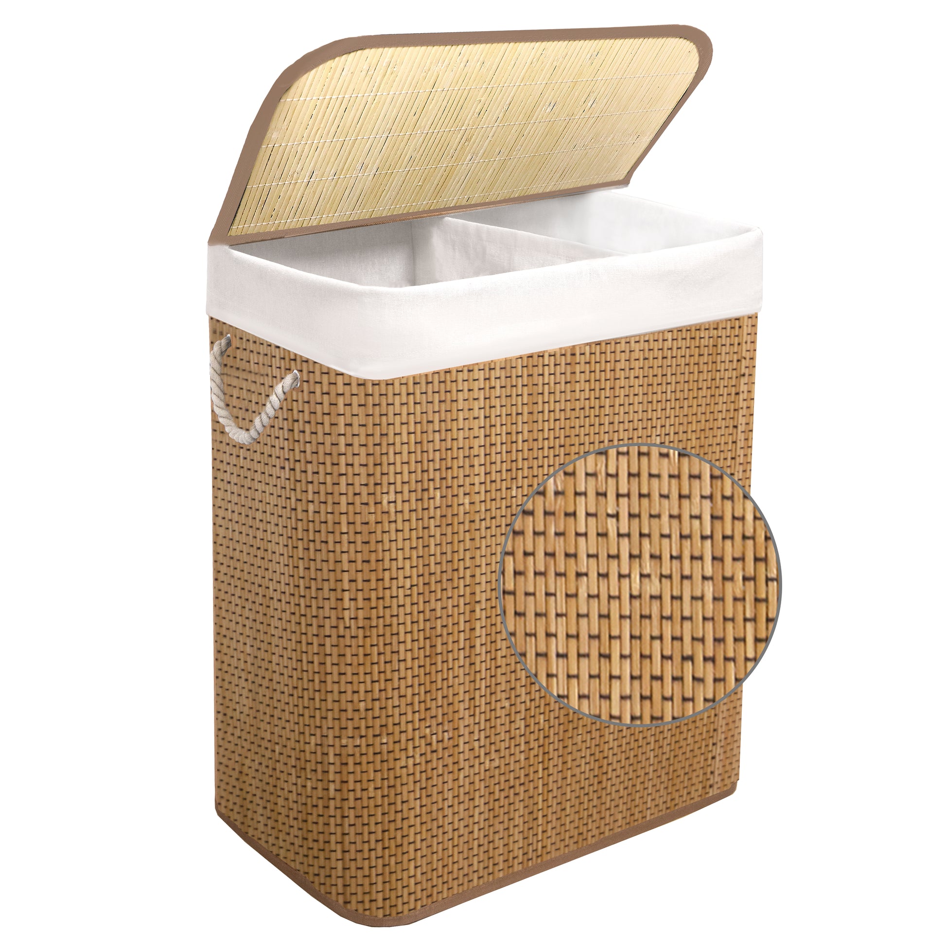 Dual-Compartment Design: Maximise your laundry organisation with our 105L bamboo laundry basket featuring two sections for easy sorting of lights and darks, streamlining your laundry process.