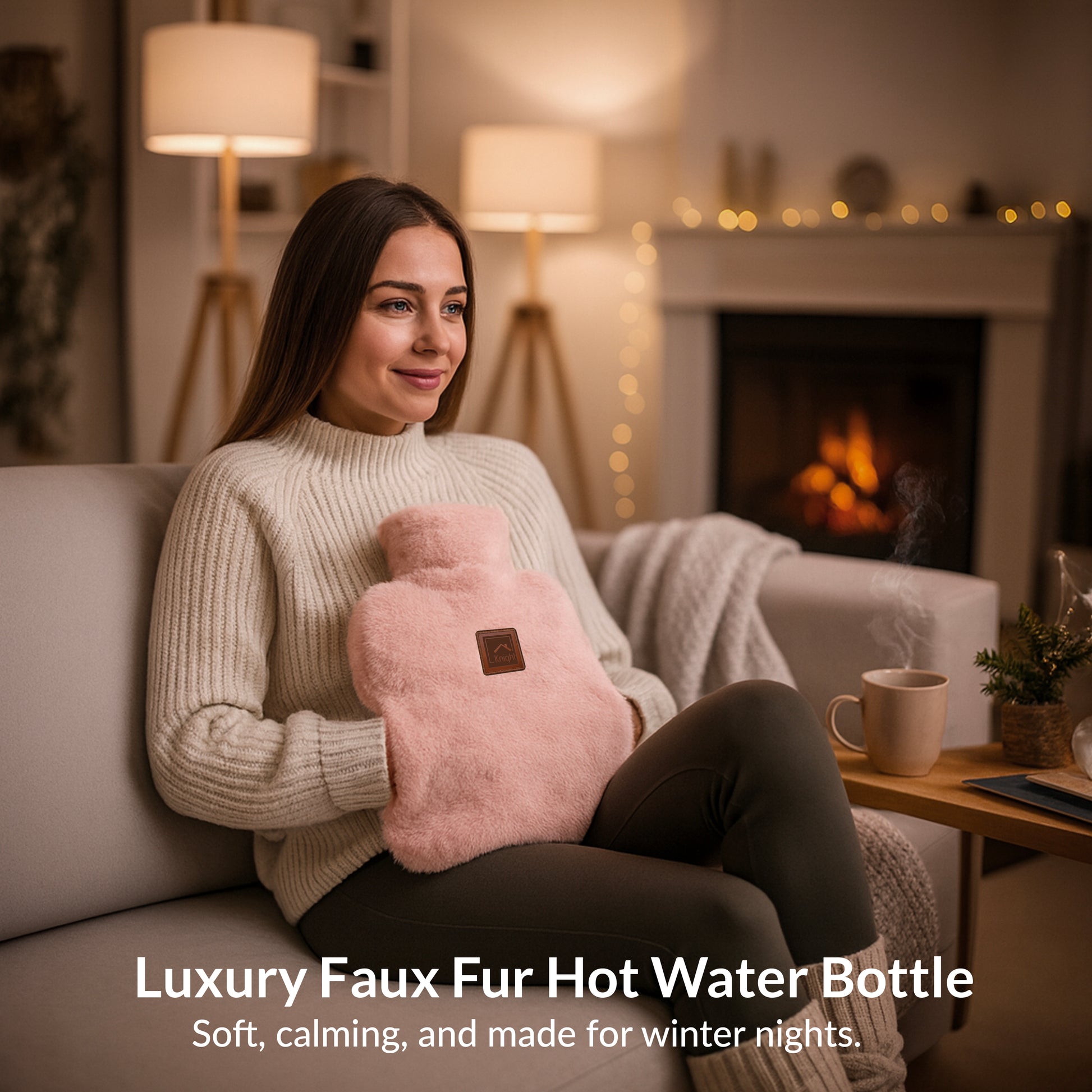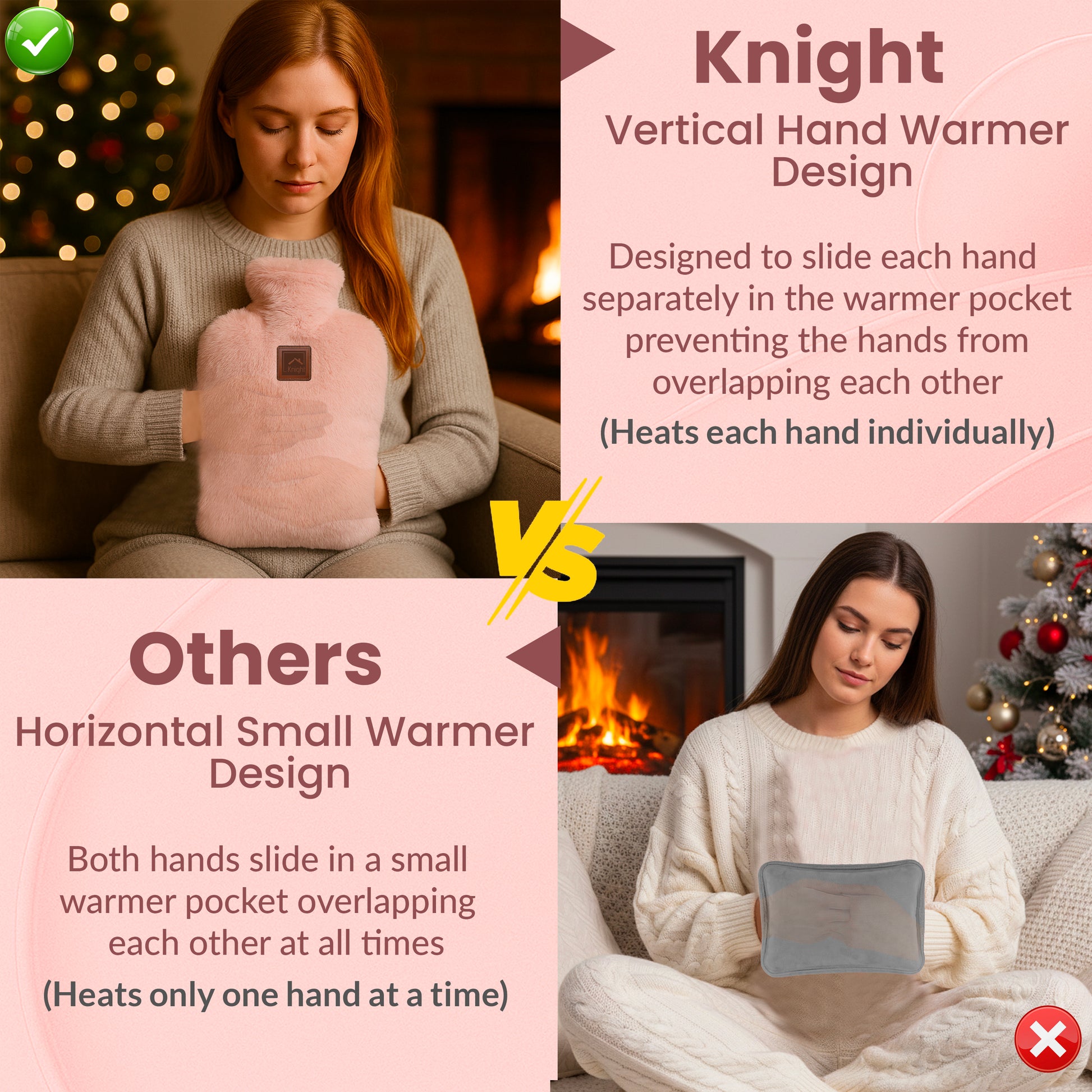 KNIGHT Rechargeable Hot Water Bottle with Charger, Soft & Fluffy Cover with Hand Warmer, Heat Pad for Hand & Body Up to 6 Hour, Fast Heating Temperature Control Valentine's Day Gift for Girls - Pink